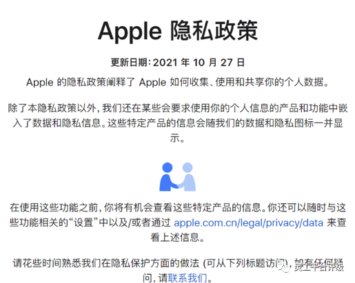 [1] 《Apple 隐私政策》:https://www.apple.com.cn/legal/privacy/szh/ ,2021 年 11月 1 日第一次访问