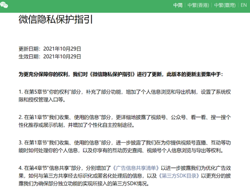 [2] 《微信隐私保护指引》:https://weixin.qq.com/cgi-bin/readtemplate?lang=zh_CN&t=weixin_agreement&s=privacy,2021 年 11月 1 日第一次访问