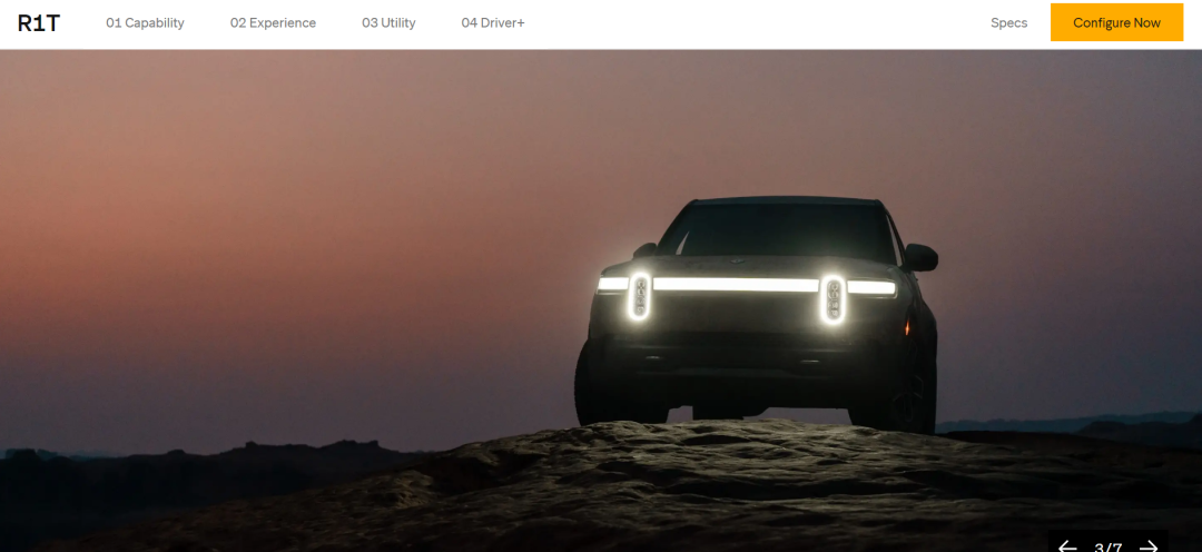 从官网来看,Rivian是一家致力于电动汽车设计、开发和制造的企业,使命是“让世界永远充满冒险精神”。这是近年来垂直整合程度最高的电动汽车制造商之一,打造了专属的充电基础设施网络,与特斯拉的超级充电站类似。针对C端消费者市场和B端商用市场,Rivian已累计推出高端电动皮卡R1T、SUV R1S和EDV系列商用电动货车。