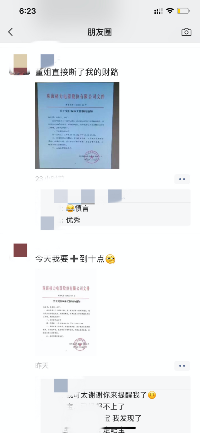 那双休制是否真正落到实处?多名格力电器员工对时代财经表示肯定。