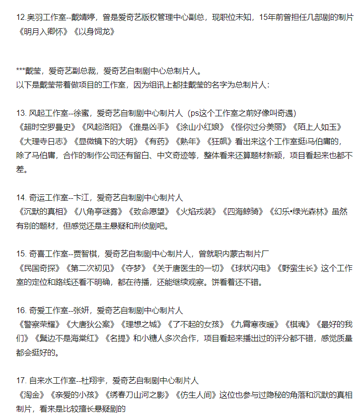 网友总结的17家爱奇艺工作室 图源/豆瓣
