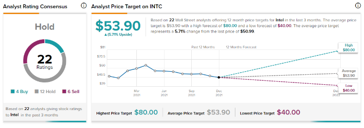 评级方面,目前华尔街给出的平均目标价为53.9美元,4个买入评级,12个持有评级,以及6个卖出评级。而今年以来,截至本周一收盘,英特尔股价累计涨幅仅为5.29%。