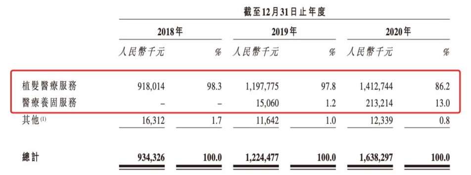 按照收入结构来看,雍禾医疗的主要收入来源是提供植发医疗服务,雍禾瞄准着“秃头”的程序员和金融民工等人,虽然做到了全国第一,营收也达到了20亿,但放在整个医疗市场而言,仍不是巨头。
