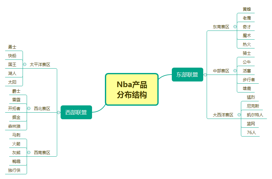 1)球队数字化:球队30支球队,东西联盟各15支球队,每个联盟又被划分为3个赛区,每个赛区由5支球队组成。