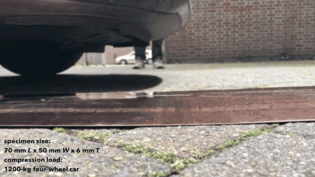 图|材料在汽车反复的碾压下仍保持完整(来源: 该论文)
