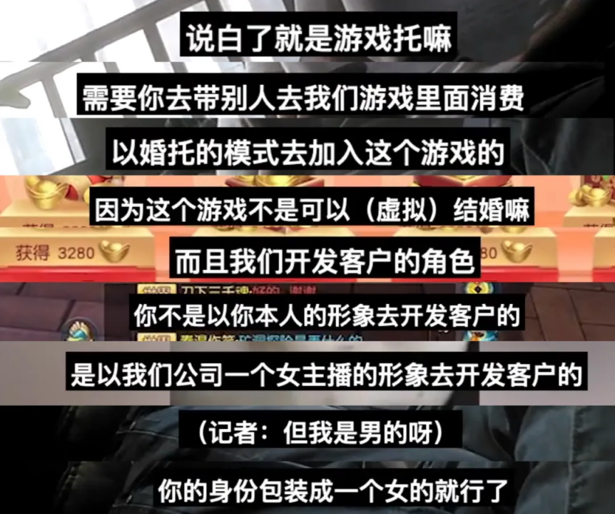 他们没有那么多用户,只能通过一些擦边球推广游戏,主要方式就是人带人的游戏托方式,并产生了很多变种,如婚托、赌托、色播当托。而后者显然到了违法犯罪的悬崖边上。