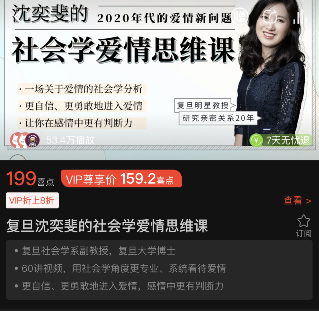实际上,沈奕斐携手新世相出品的恋爱课已经上线整整一年了,一共有60节,发布在微信小程序和喜马拉雅平台,价格为199元。