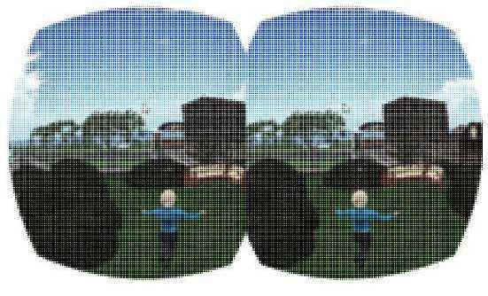 第一是成像的像素点密度问题。要实现接近现实的逼真效果,需要保证用户在看到全视野场景画面时,像素点密度要足够大,否则很可能会产生图像模糊(如上左图)。