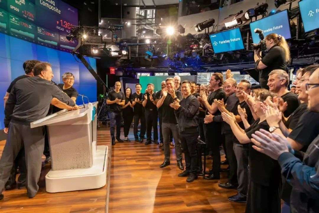 ▲法拉第未来于纳斯达克敲钟上市,来源:微博@FaradayFuture