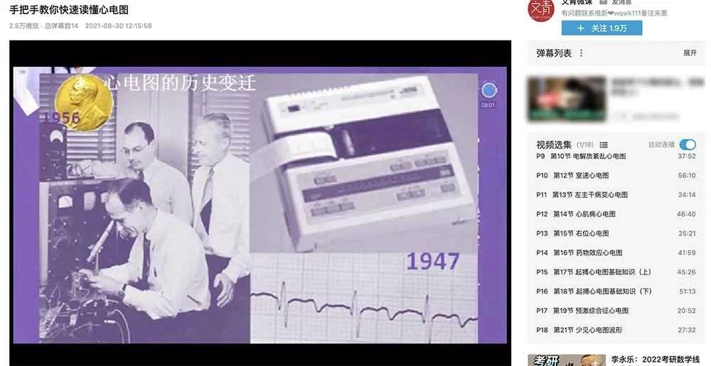 抛开准确性不谈,当我想要学习心电图读法时,在网站上找到了一个 18 节总时长超过 10 小时的课程,至少作为一个非医学生,这个难度也太高了点。