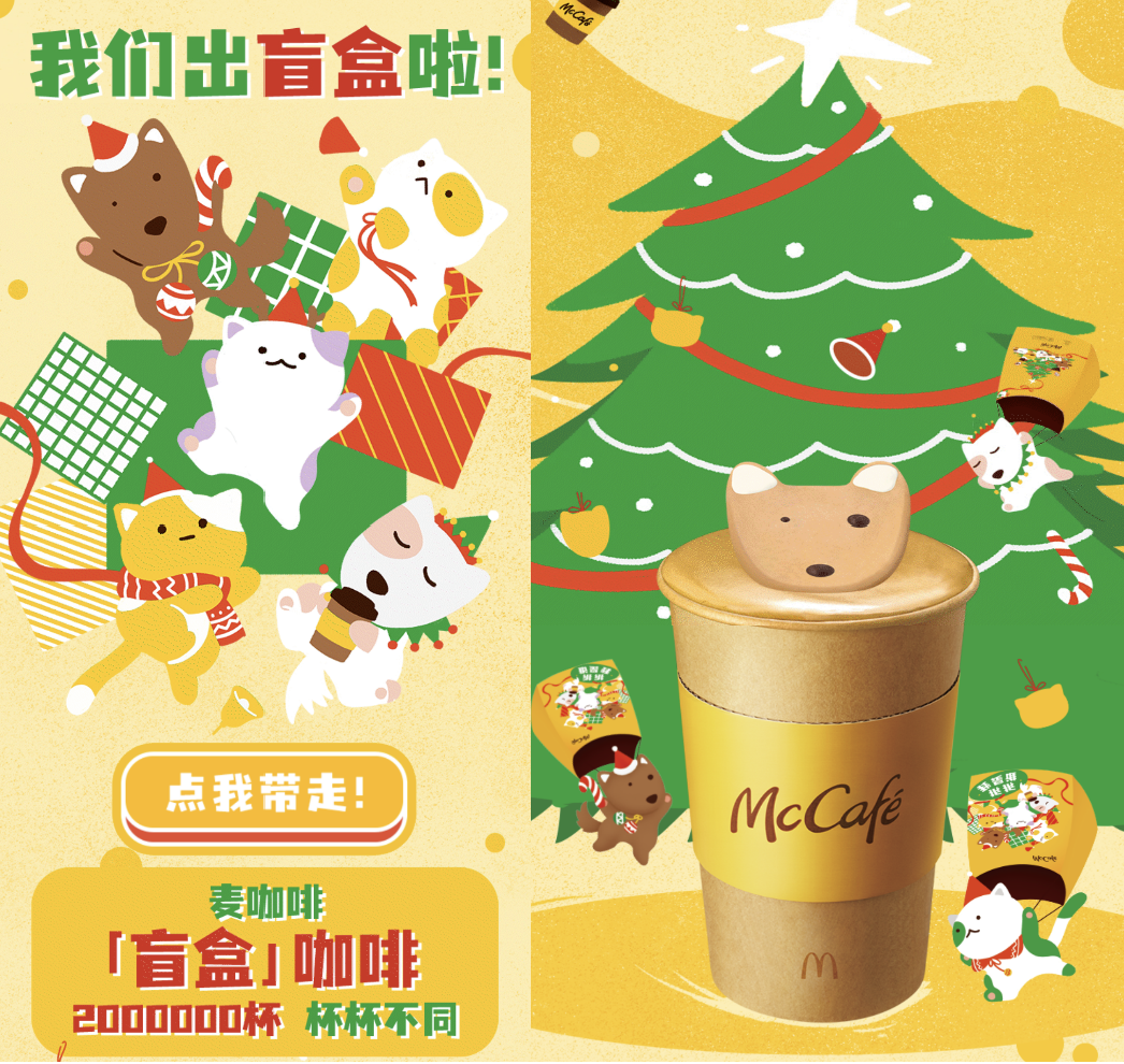 除此之外,今年麦当劳麦咖啡的圣诞玩法结合了萌宠和盲盒两个兴趣点,也就是,只要购买任意麦咖啡大杯饮品,就可获得一款萌宠头像的蛋白霜。想象下,一杯咖啡上漂浮着可爱、精灵般的宠物头像,很难不吸引年轻人的关注。在小红书等社交平台里,已有不少网友晒了图。