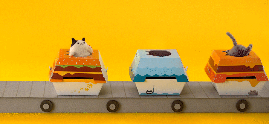 汉堡盒和猫窝的集合本身就是一个非常有创意的事情,而这个创意的背后其实也是突破了用户的想象,没想到品牌的跨度可以这么大。