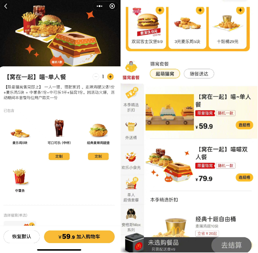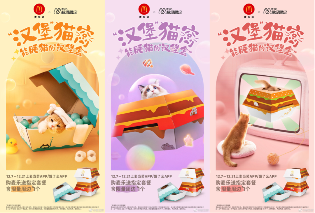 而麦当劳这一波营销明显是抓住了爱撸猫,喜欢萌宠的年轻人。而且还顺着年轻人的喜好推出了一款猫窝周边,除了铲屎官可以享受品牌带来的快乐,喵星人主子也可以一起感受快乐,在情感触达层面可以说是「爱屋及乌」了。
