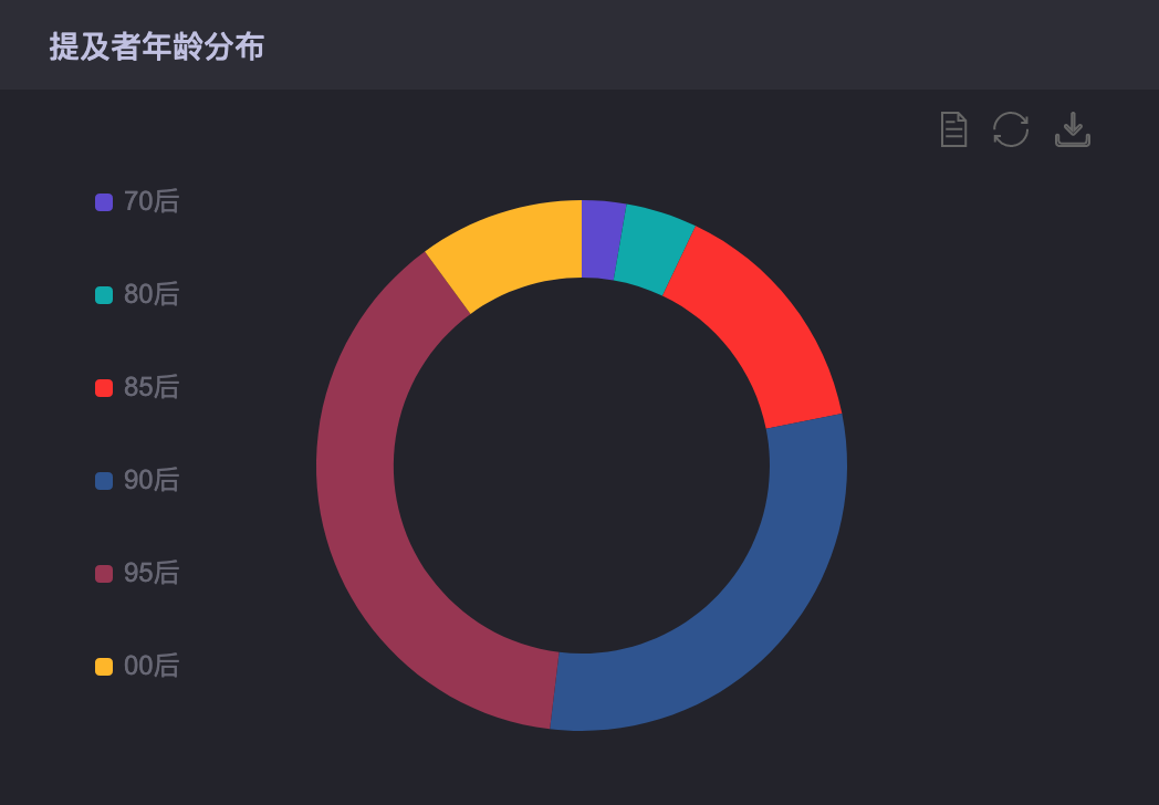 根据时趣洞察引擎数据显示,关注麦当劳猫窝的用户们主要为95后和90后,占据了一多半人群,另外,女性占比75%以上。这部分人群不仅参与了麦当劳猫窝,也围观了#麦当劳崩了#、#能睡猫的汉堡#等话题。
