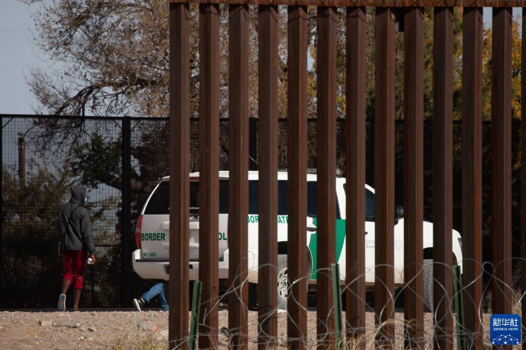 12月7日在墨西哥华雷斯城拍摄的照片显示,试图翻越边境墙进入美国的移民被美国边境执法人员拦截。近日,大量移民试图取道墨西哥前往美国,许多人滞留在美墨边境地区。 新华社发(戴维·佩纳多摄)