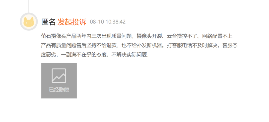另一网友更是遇到了摄像头开裂、云台无法操控、网络无法配置等问题。