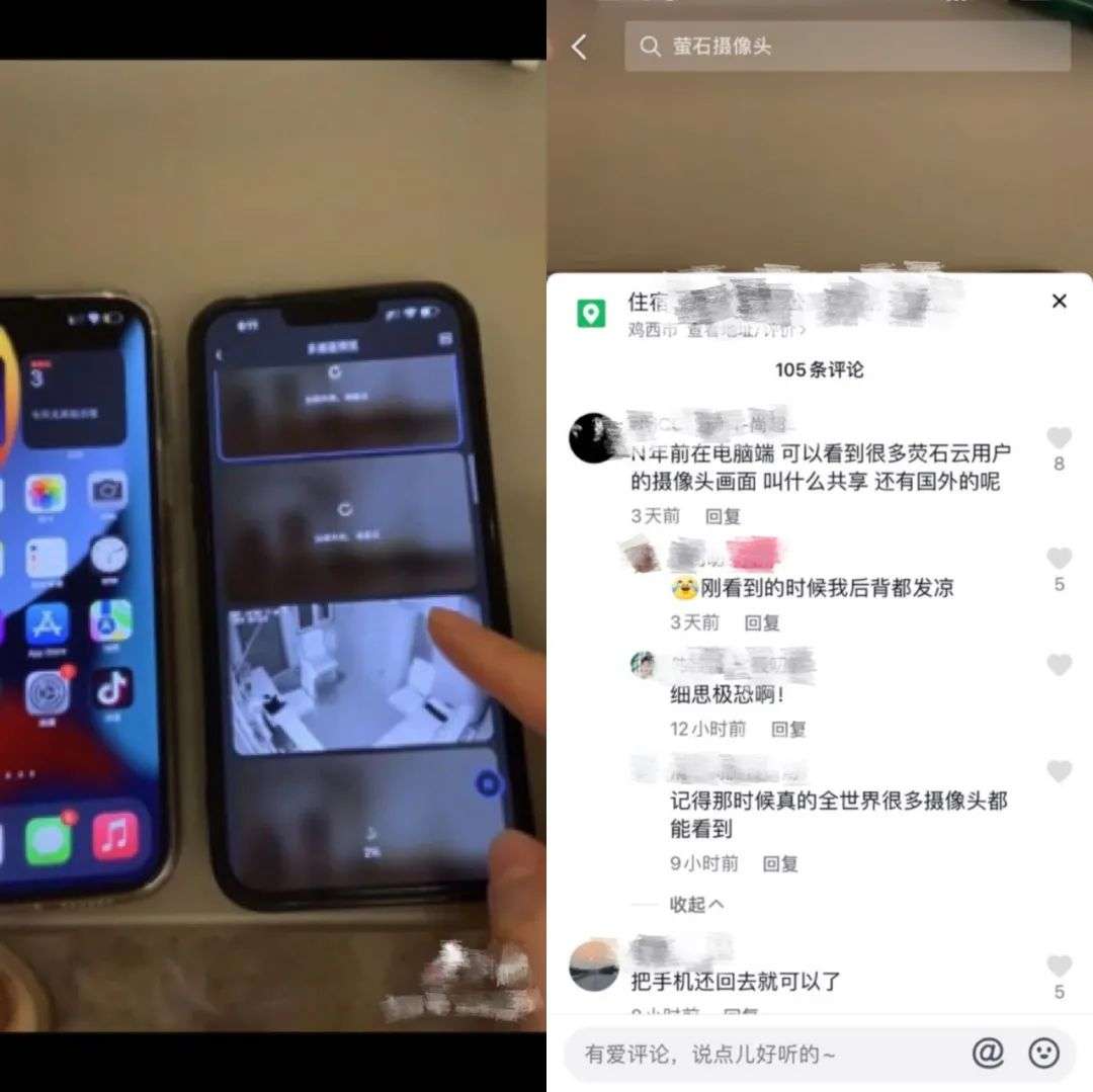 12月3日,一网友在某短视频平台发布视频,表示自己通过萤石云视频查看自家监控时,意外发现App内可以显示其他小区的实时监控视频,视频内容甚至包括保安室、楼道等。对此,有网友在评论区表示:“N年前在电脑端,可以看到很多萤石云用户的摄像头画面”。