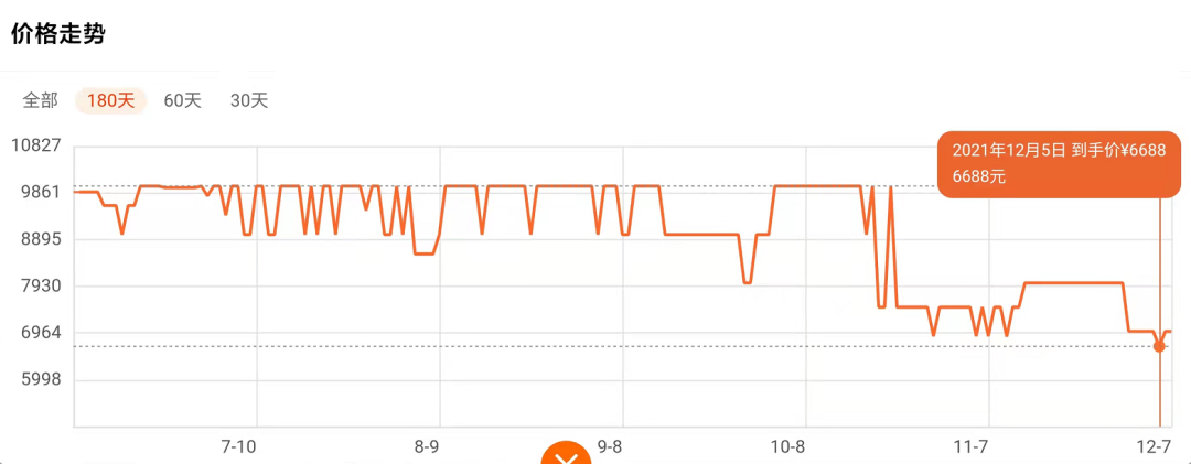 ▲小米MIX FOLD近180天价格走势图,数据来源:慢慢买