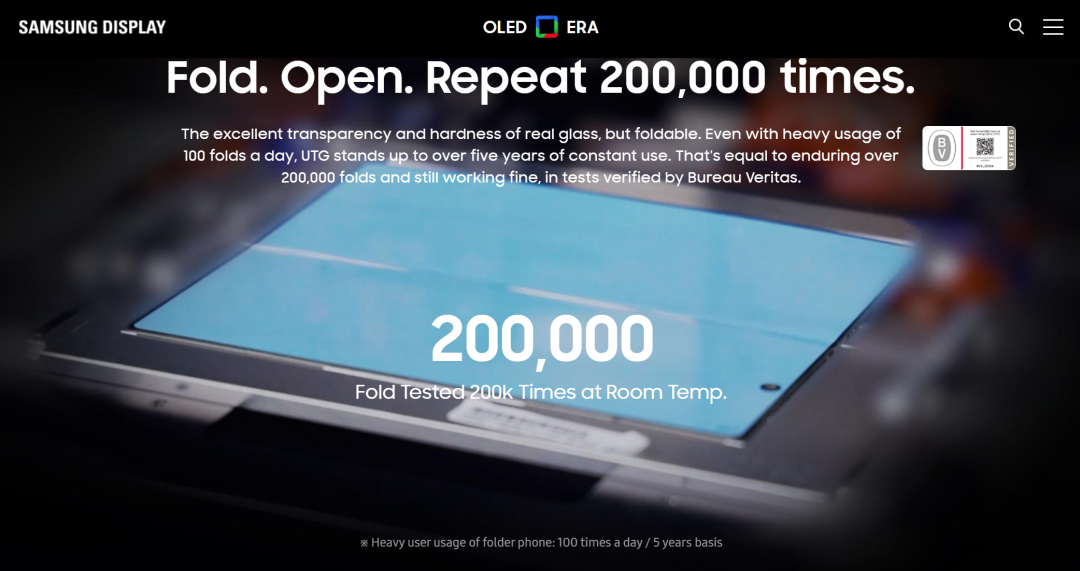 就在刚刚过去的11月,三星官方公布了最新的柔性OLED屏幕技术进展,其最新的柔性OLED屏幕模组能够实现1.4mm的弯折半径,折叠寿命高达20万次,并且是在屏幕表面覆盖了UTG超薄玻璃的基础上。