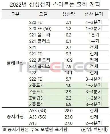 就在前不久,有外媒曝出了三星的2021年手机出货计划,从这份计划中,我们可以看到,三星2022年计划出货1300万部折叠屏手机,其中包括900万部Galaxy Z Flip系列和400万部Galaxy Z Fold系列。