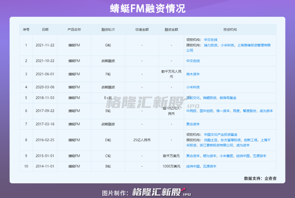 蜻蜓FM成立于2011年,是中国首家网络音频平台,迄今共完成10轮融资。