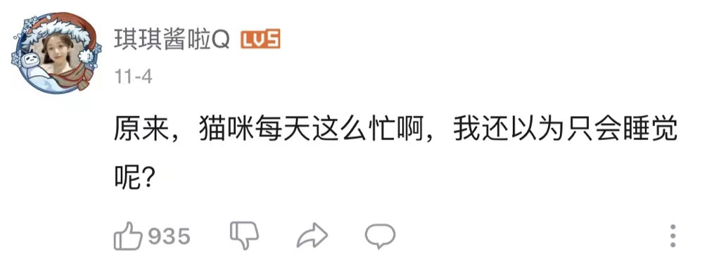 不少观众看完视频后意识到,这一只只陪伴着人类的小猫,在看不见的时候,也有着自己精彩的生活。
