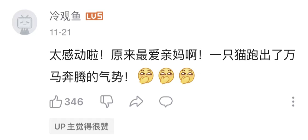 正如评论区的留言,在UP主的视频中体验沉浸式当猫,总会让人的内心变得更加温柔。