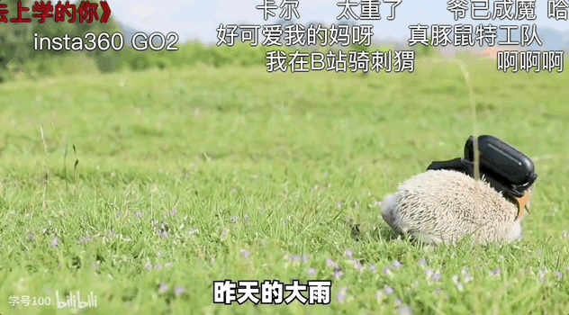 UP主@学号100 ,给自家小刺猬的背上装备了一台拇指相机。