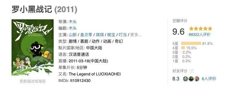但银幕背后、屏幕之下,大部分人不知道的是,《罗小黑战记》同名 TV动画早在 2011 年就已经上线,每集只有 5-8 分钟,出一集最短需要至少两个月时间,被粉丝称为「年更动画」「有生之年系列」。