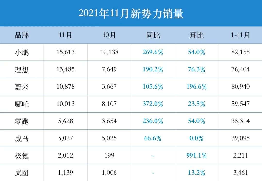 目前造车新势力前三甲并没有真正拉开差距,小鹏前11个月的销量仅仅比蔚来多1215辆,比理想多5751辆,而360加持后的哪吒汽车单月销量也开始突破一万,正在迅速赶超。