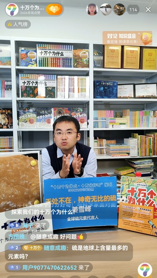 为什么切洋葱会落泪?为什么红细胞能为我们运送氧气?为什么大蒜那么臭而香水那么香?这些居然都与硫元素有着密不可分的关系。12月2日晚7点,“十万个为什么”直播间邀请到了硫元素代言人姜雪峰教授,带领大家走进化学世界,了解无处不在神奇的硫元素。该场直播历时一小时,看播人次超2万。