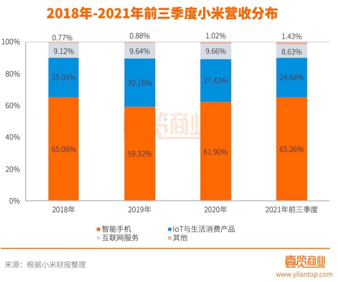 智能手机、IoT与生活消费产品是小米营收的最大来源,二者合计占据了小米整体营收的约90%。但从毛利润角度,2020年及之前,互联网服务一直贡献着做多的毛利润,但今年前三季度,智能手机取代了互联网服务的地位,原因在于小米手机销量的增长和单价的提升。