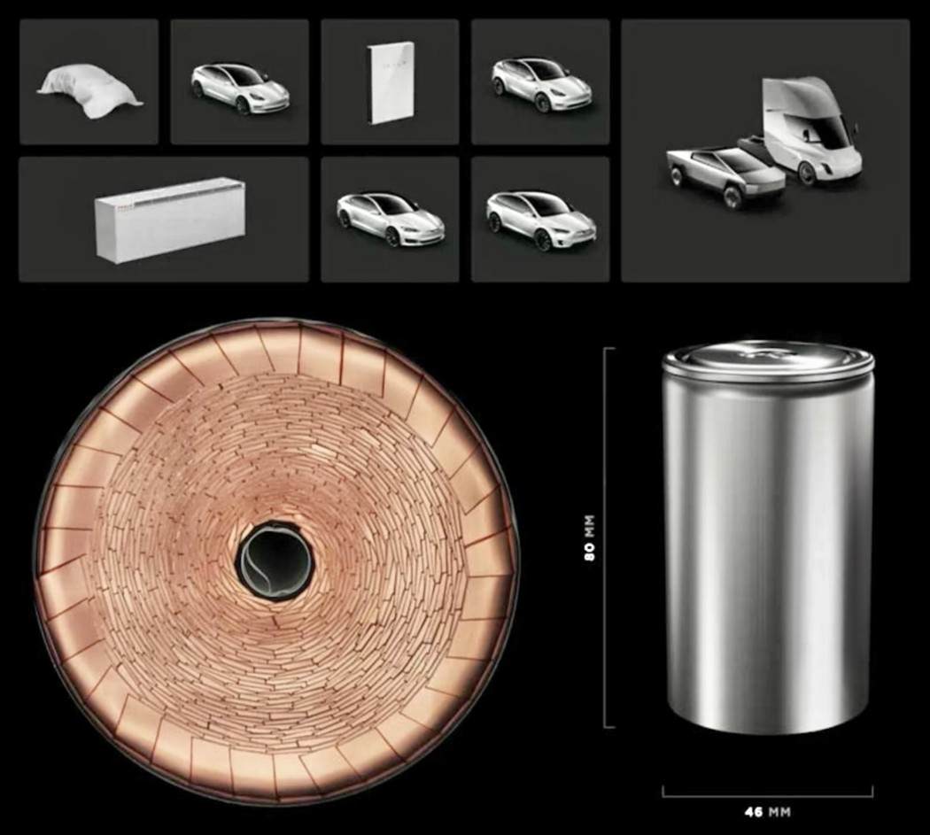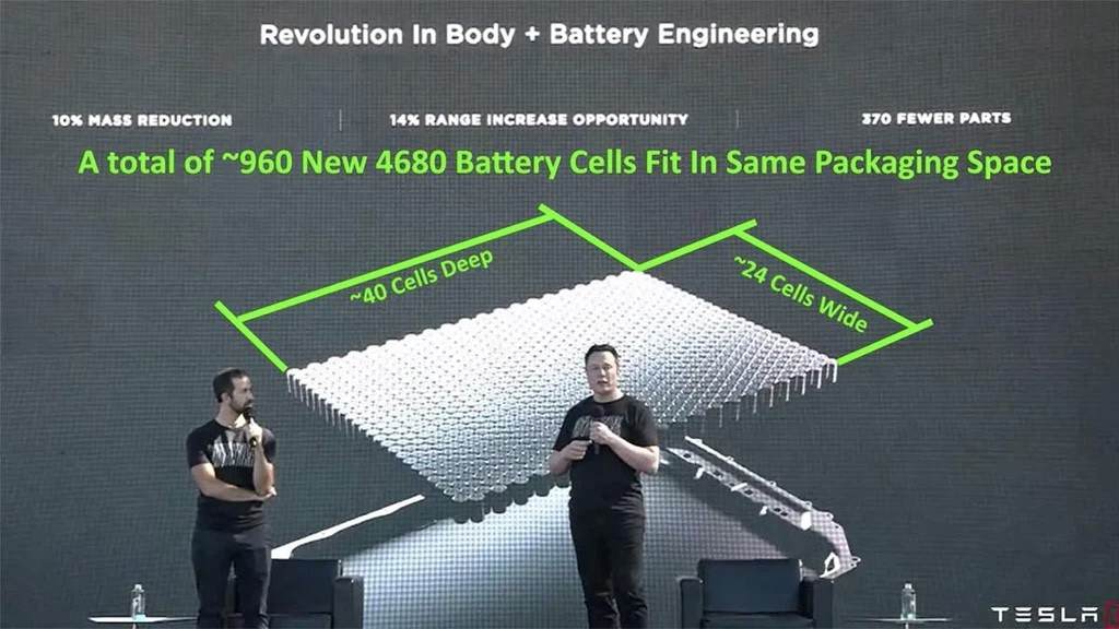 新电芯就是4680电芯,它明显不同。960枚4680占用的空间相当于Model 3汽车2170所占的空间。一枚4680的容量是9000mAh,2170只有5000mAh,所以装上4680总容量可以达到130kWh。