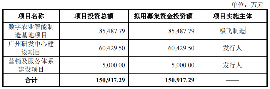 此次极飞科技拟募资15.09亿元,用于数字农业智能制造基地项目、广州研发中心建设项目以及营销及服务体系建设项目。