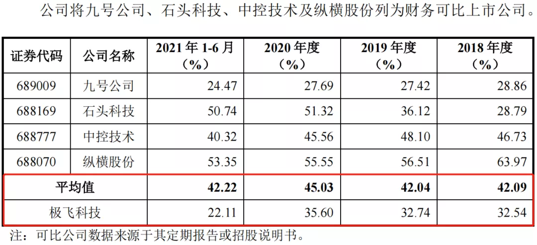 招股书显示,2018年-2020年,极飞科技的毛利率分别为32.54%、32.74%、35.60%。2021年上半年,其毛利率陡降至22.11%。同时,报告期内,极飞科技的毛利率持续低于行业均值。