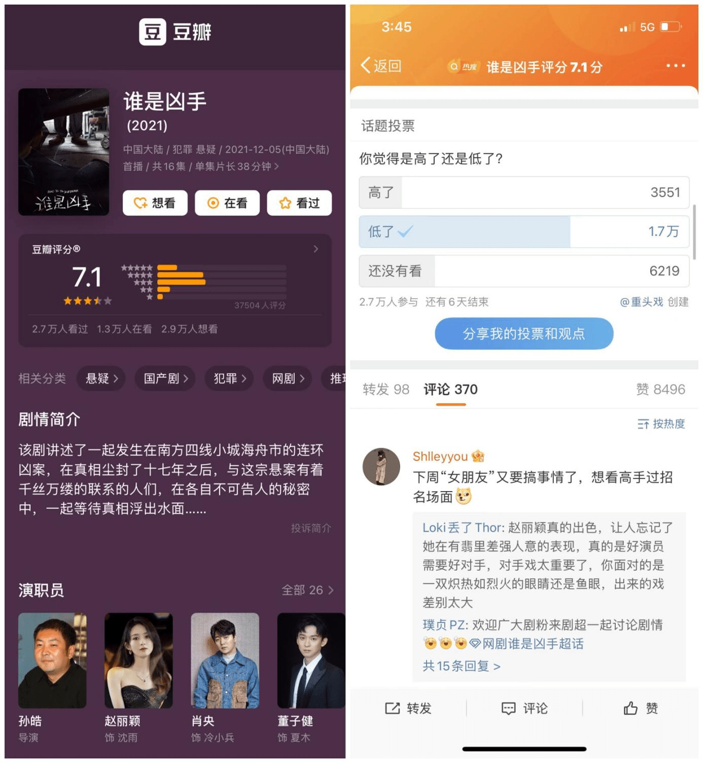 《谁是凶手》网剧由赵丽颖、肖央、董子健等实力派青年演员出演,在网络上未播先火,也成为爱奇艺平台精品悬疑剧场“迷雾剧场”年度最受期待的作品之一。该剧上线3天便登顶爱奇艺热播榜,弹幕量累计突破73.6w,并且在全网引爆多个热搜话题,剧集以及相关主演的讨论度持续居高不下。