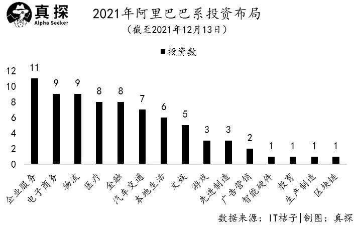 今年,阿里系投资出手最多的领域是企业服务,共计出手11次,紧随其后的是物流、电商领域各9次。在金融、医疗领域,阿里系投资各出手8次,在汽车交通领域则出手了7次。