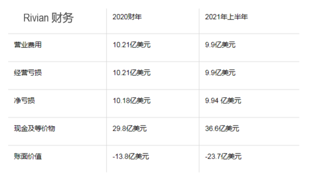 正如你所看到的,Rivian的营业费用和经营亏损是一样的。因此,该公司在这两个时期都没有值得一提的收入。还要注意负资产。这要从资产中减去负债和“可持续赎回的优先股”。严格的说,优先股并不是一种债务,但它产生了几乎相同的义务。因此,它的功能就像负债,减少了普通股权益,所以导致Rivian的账面价值是负的。
