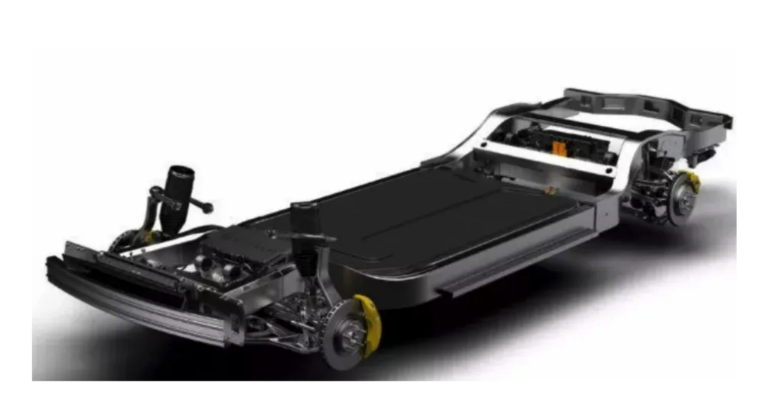 滑板式底盘理念类似于汽车发展史上的“非承载式车身”,底盘架构一体化,可将电池、电动传动系统、悬架、刹车等部件提前整合在底盘上。国内比亚迪推出的e3.0平台也有异曲同工之妙。