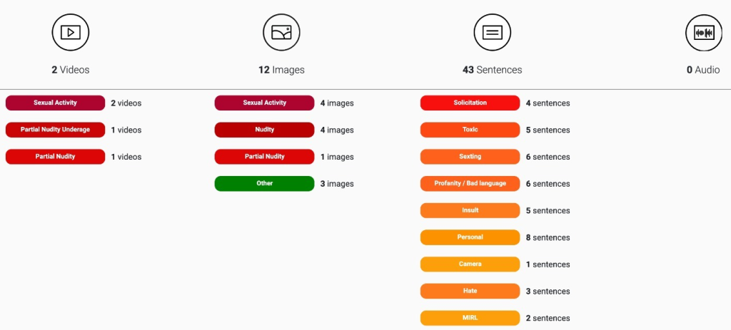类似的筛查技术通常使用字典式匹配,但L1ght则是 分析语境和用户的历史聊天记录 ,准确度更高,它可以精准辨别一段对话是两个成年人在火热调情还是成年人在恶意骚扰未成年人,还可以分别出一段包含打斗词语的对话是两个人在玩游戏还是一方在暴力辱骂另一方。