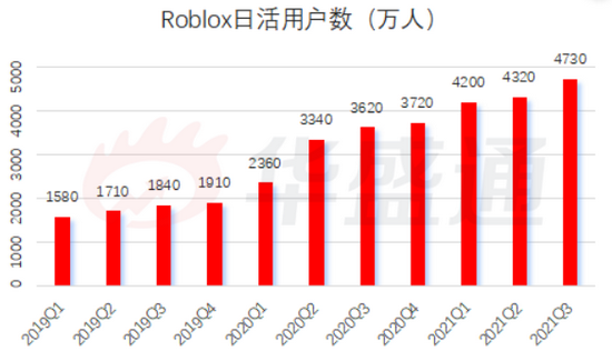 这一趋势从Roblox的财报中也能有所反映,Roblox Q3日活用户达到了4730万人,同比大增31%。更重要的是近两年来,Roblox的日活用户从未出现下滑,去年开始用户基数增长速度加快。