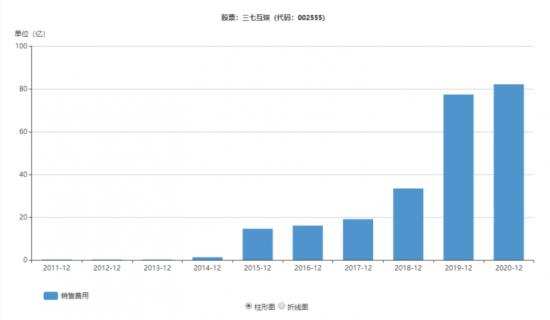 而中国游戏公司喜欢粗犷地反其道而行,更愿意主动把游戏推广内容做成图片、视频等方式,投放到各个媒体、论坛、短视频等平台,进行“买量”。这种模式,让游戏公司的成本居高不下。最为突出的是三七互娱,它2017年的销售费用为19.1亿,到了2020年则飙升到了82.1亿。