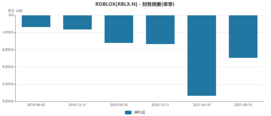 事实上,Roblox上市至今一直处于运营亏损状态,且近一年亏损幅度明显增加。2021年Q3环比亏损7400万美元,虽较Q2亏损1.4亿美元有所收窄,但是亏损较去年同比扩大。