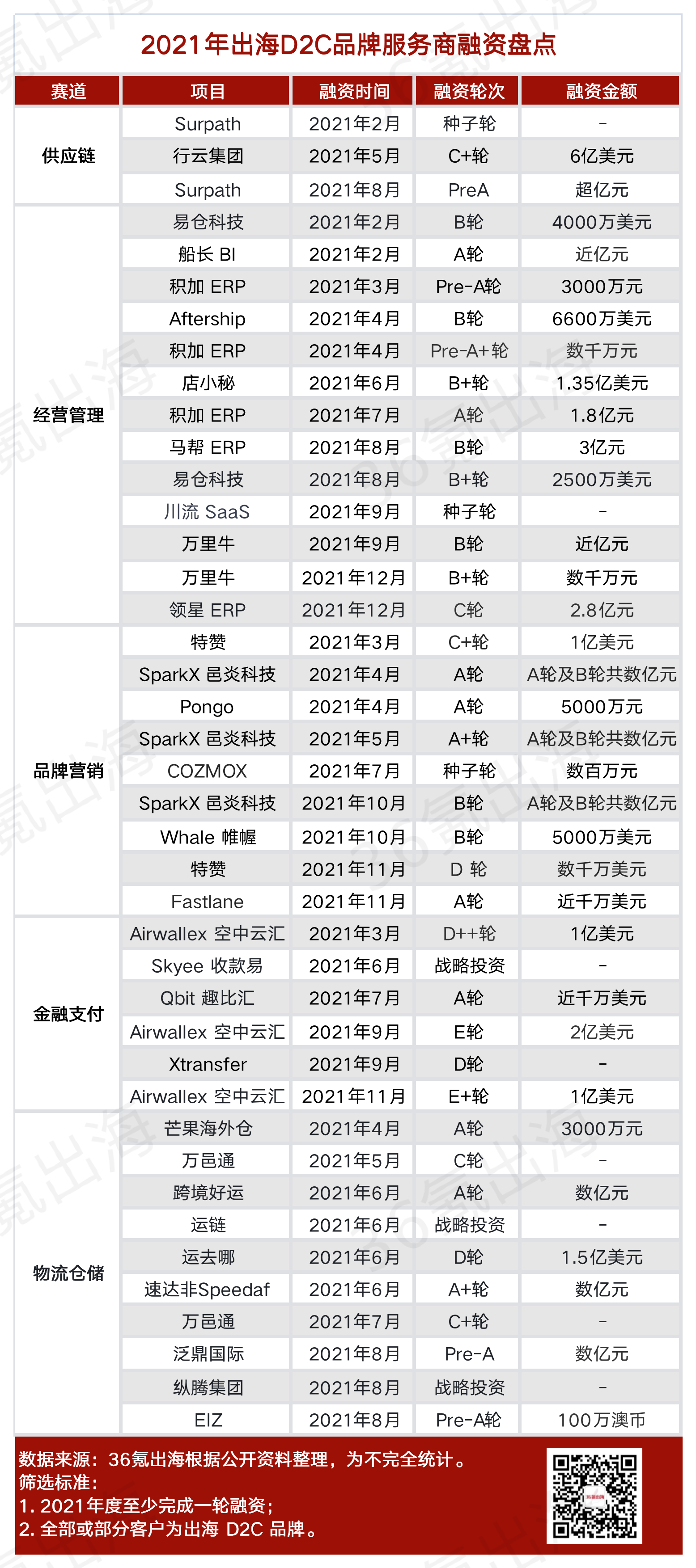 与此同时,随着跨境电商玩家们品牌意识的崛起,帮助出口电商多渠道布局的服务商们也在2021年相竞获得资本青睐。