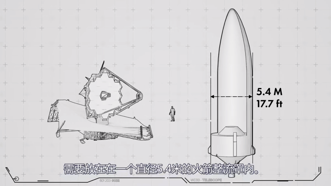 为满足直径只有5.4米的整流罩的大小,巨大的韦伯望远镜必须像“折纸”一样被折叠放入整流罩。