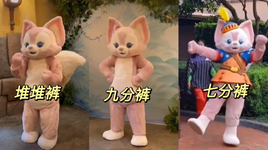 所谓“内胆”,指的是人偶扮演者。更诡异的是,粉丝根据不同扮演者穿上玩偶服后的裤子长度区分出了三个内胆,分别是堆堆(堆堆裤)、九九(九分裤)、七七(七分裤)。