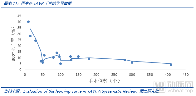 从时间角度看,TAVR的植入量在短期(3年内)主要受供给端驱动(也即能够进行TAVR手术的医院和医生数量)。很明显短期内TAVR患者端有效需求量远超供给,因此,TAVR推广进入的医院数量及能进行TAVR手术的医生数量,决定了近3年TAVR的植入量。