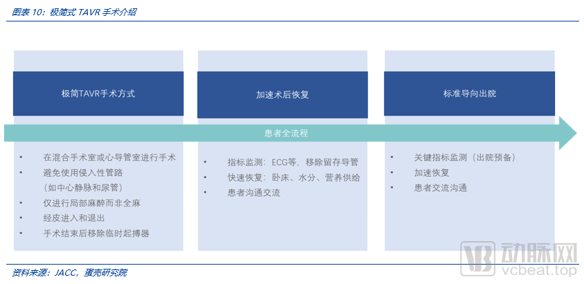 二是随着技术逐渐成熟,极简式TAVR已是大势所趋,TAVR手术难度降低使得推广更加容易。非极简TAVR需2小时的手术时长(或更长,取决于术者熟练程度),而极简TAVR最快仅需30分钟。TAVR的植入本身已经不是主要难点,未来衡量术者的手术能力指标将转变到手术时间(1小时内完成)、单次植入瓣膜数量(单次1个,无预期外的瓣中瓣),供给瓶颈很快突破。