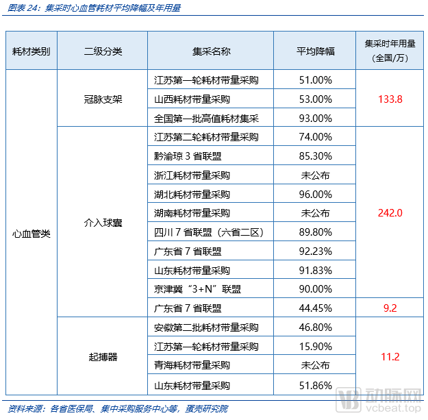 关于医保集采开展的时间,我们预期在5-10万植入量之前(大概6年内),国家医保覆盖并集采的可能性不大。我们统计了集采时的主要医疗耗材年使用量,心血管类耗材被集采时大部分已达到十万级的使用量,部分品种超百万使用量。
