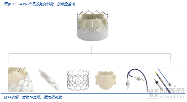 TAVR的技术包括瓣膜相关技术和输送系统相关技术,壁垒极高,海外主力参与者仅有爱德华、美敦力、雅培、波士顿科学四家巨头企业。瓣膜设计过程中需要考虑瓣叶的抗钙化耐久性,以及相关血液动力学指标,否则瓣膜容易产生钙化沉积和血栓,进而加速毁损。此外在瓣膜扩张方式方面,也有自扩瓣、球扩瓣和机械扩张瓣膜等多种扩张方式,如何进行扩张方式的选择与取舍也体现了企业对于瓣膜设计和临床应用的理解深度。总的设计原则既要考虑到瓣膜释放后的临床效果,又要考虑到对于术者操作的便捷和可靠程度,还要考虑到减少术后不良反应,最后瓣膜的成本还要可控、可负担。例如,需要进行充分锚定和支撑,对瓣膜支架编织和材料加工技术要求极高(影响到径向支撑力);而周全考虑术后问题,则瓣膜支架上端花冠处需要进行大网孔设计,避免产生冠脉阻塞,以方便TAVR手术后仍能够进行PCI手术;瓣膜下端一般需要进行裙边(外包或贴合)设计,以减少或避免植入后的瓣周漏;整体瓣膜长度不宜过长,以增加对主动脉弓的通过性,同时避免产生信号阻滞增加PPI(永久起搏器植入);径向支撑力需要恰到好处,径向支撑力过大容易在释放过程中有过度弹力导致移位;径向支撑力过小则难以锚定定位,同时瓣膜展开不充分容易加速毁损。可以说,每一个精巧的设计要点背后,除了“匠心”所在,更是用生命积累出的宝贵经验,这一类产品和技术不可能进行“快速试错迭代”,而只能进行严谨的设计和试验,因此技术壁垒极高。
